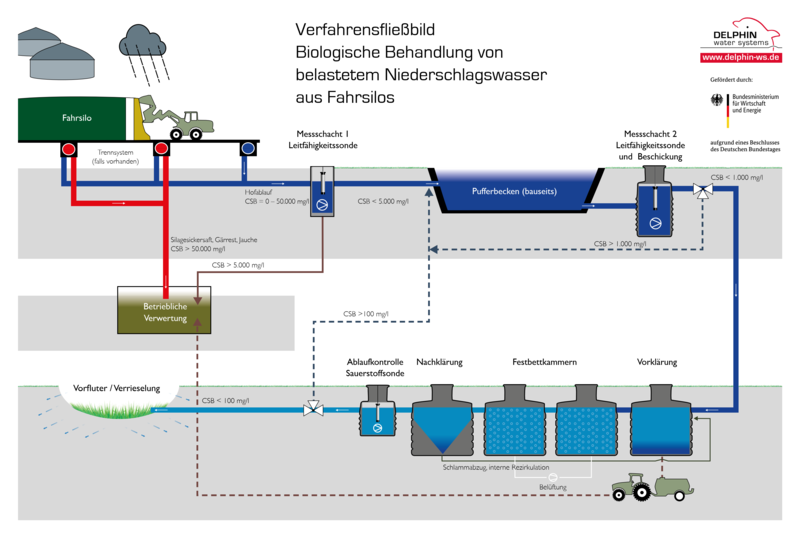 Hochbelastetes Niederschlagswasser aus Fahrsilos und den dazugehörigen Fahr- und Rangierflächen werden, durch das vom INAR-Netzwerkpartner Delphin Water Systems aus Buxtehude entwickelte biologische Niederschlagsabwasser Klärsystem (NSW-Kläranlage), wirtschaftlich behandelbar.